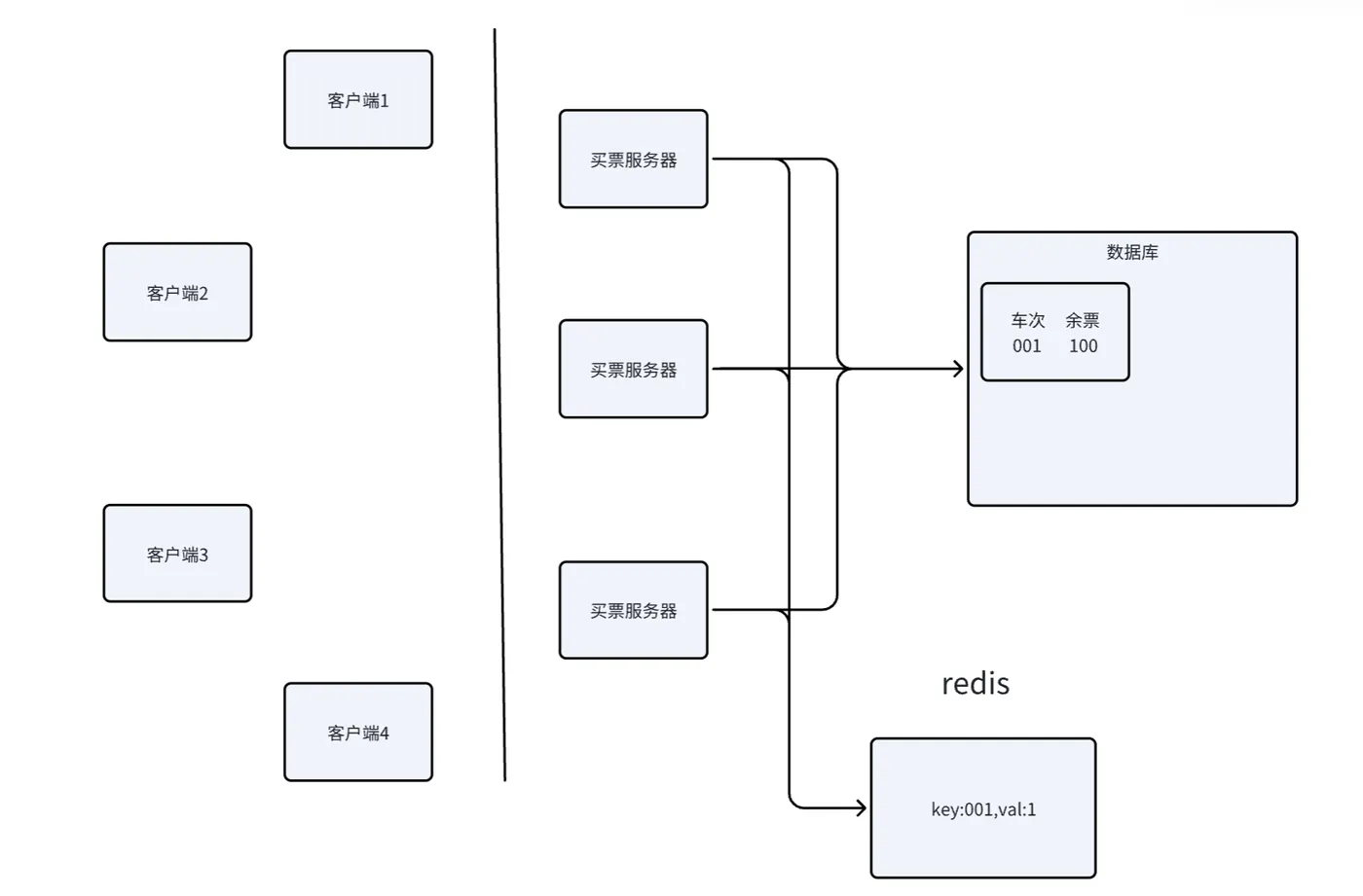 买票服务器在进行买票的过程中,就需要先加锁,就是往redis上尝试设置一个特殊的key-value,完成买票后,就会把这个key-value删掉。其他服务器在买票的过程中,也会去尝试设置这个key-value,如果发现key-value已经存在,就认为加锁失败(是放弃还是阻塞,就看具体的实现策略了)。