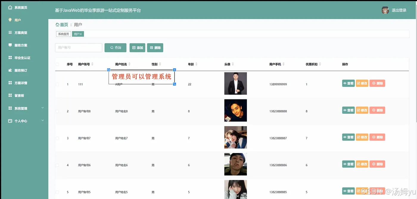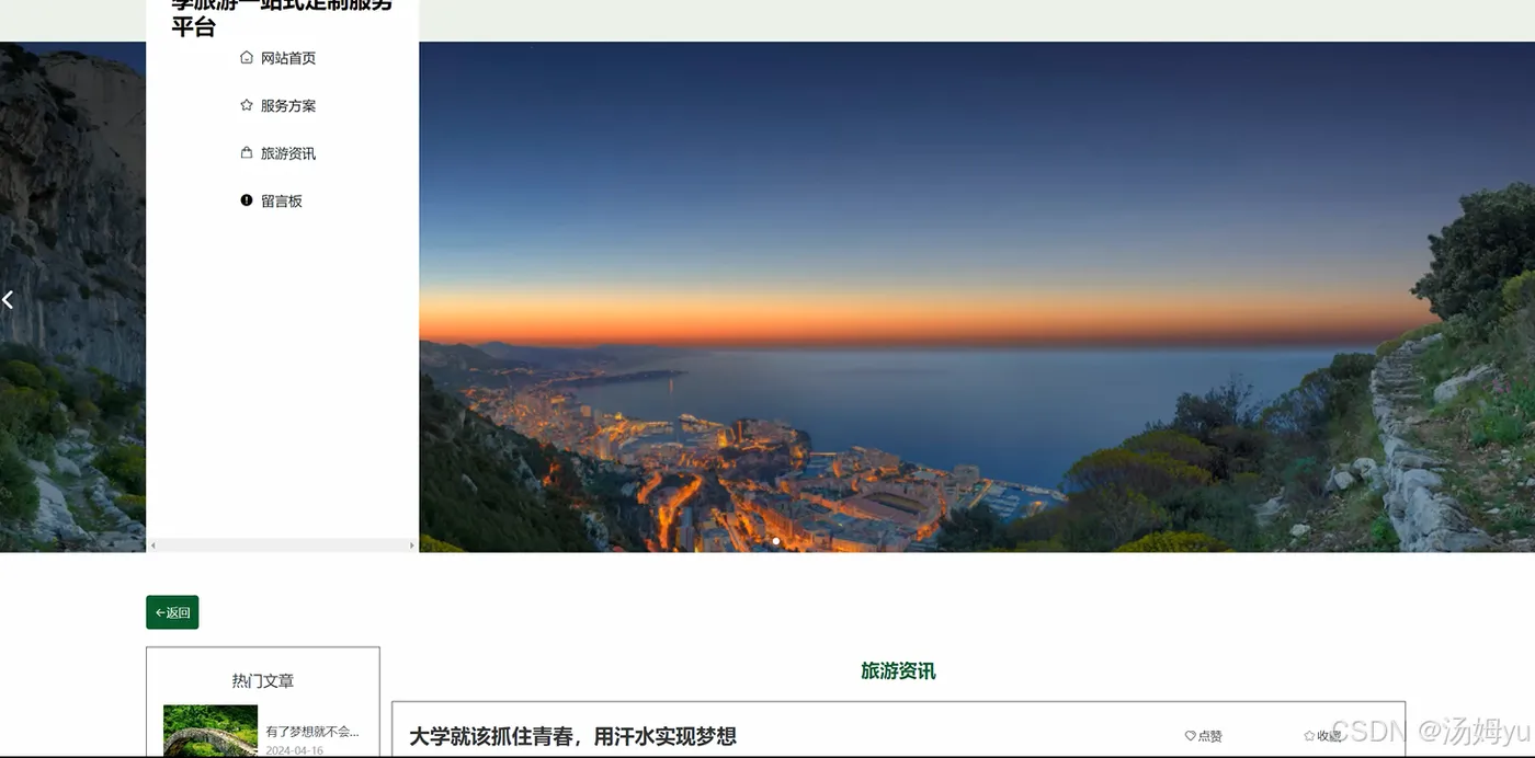 在当今社会,毕业旅游已成为众多毕业生告别校园、开启新征程的重要仪式,承载着他们对青春的珍贵回忆与对未来的美好憧憬。随着人们生活水平的显著提高和消费观念的持续升级,毕业生群体对于毕业旅游的需求愈发多样化和个性化。他们不再满足于传统的、千篇一律的旅游线路,而是渴望拥有独一无二、深度体验的旅行安排,以充分展现自我、留下难忘回忆。然而,当前旅游市场在满足毕业旅游需求方面存在明显不足。一方面,市场上现有的旅游产品大多针对大众游客,缺乏针对毕业生这一特定群体的精准定位和特色设计,难以契合他们追求个性、自由、社交的旅游诉求。另一方面,毕业生在规划毕业旅游时,往往面临信息繁杂、资源分散、决策困难等问题,从行程规划、交通住宿预订到景点门票购买等各个环节,都需要耗费大量的时间和精力,且容易因信息不对称而遭遇各种问题,影响旅游体验。与此同时,互联网技术的飞速发展为旅游行业的创新变革提供了有力支撑。大数据、人工智能等新兴技术的应用,使得旅游服务的个性化、智能化成为可能。通过构建毕业旅游一站式定制系统,能够整合各类旅游资源,利用先进的技术手段为毕业生提供精准的需求分析、个性化的行程规划和便捷的在线预订服务,有效解决当前毕业旅游市场中存在的问题,满足毕业生日益增长的个性化旅游需求,推动旅游行业的转型升级和高质量发展。