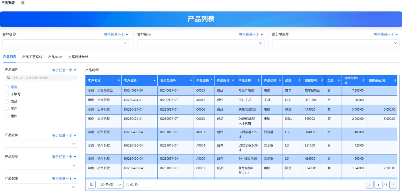 - 方案到BOM的转换(把确认的方案推送为正式BOM)。