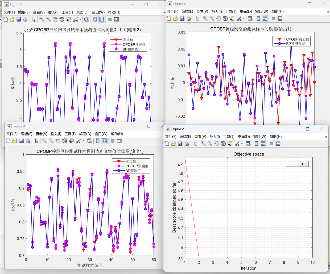 优势:在风电功率预测、故障诊断等场景中,CPO-BP模型较传统BP神经网络精度提升15%-20%。