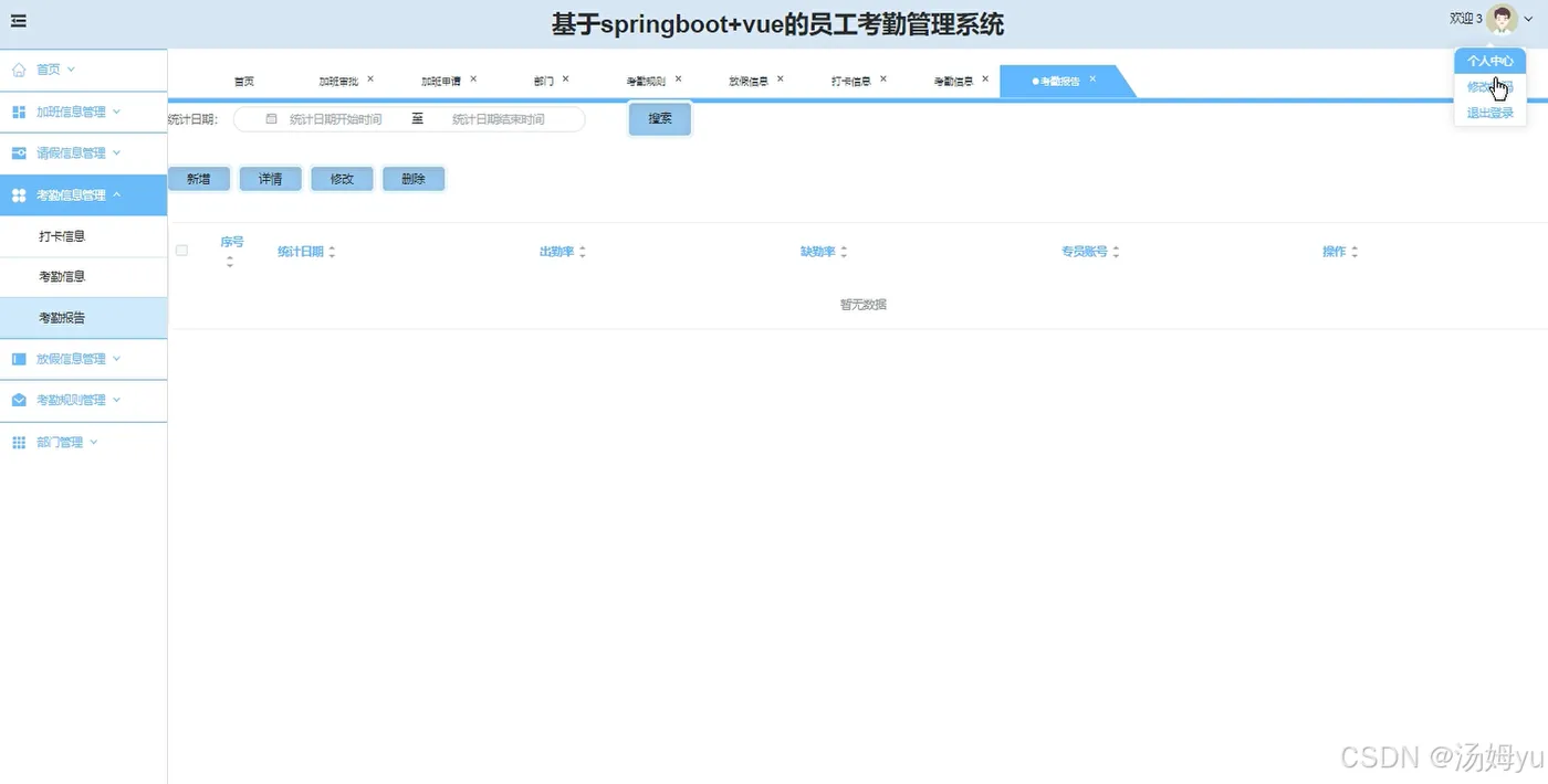 传统考勤管理依赖人工统计,耗时费力且易出错。基于Spring Boot的企业考勤管理系统实现了考勤数据的自动化采集与处理,能快速准确地生成考勤报表,涵盖迟到、早退、请假等详细信息。管理人员可实时查看考勤情况,及时发现问题并处理,极大节省了时间和人力成本,使企业能将更多资源投入到核心业务中,提升整体运营效率。