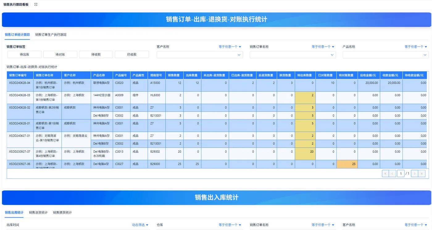 - 展示:新建/待确认订单、逾期订单、关键物料缺料列表、出货计划、毛利趋势。