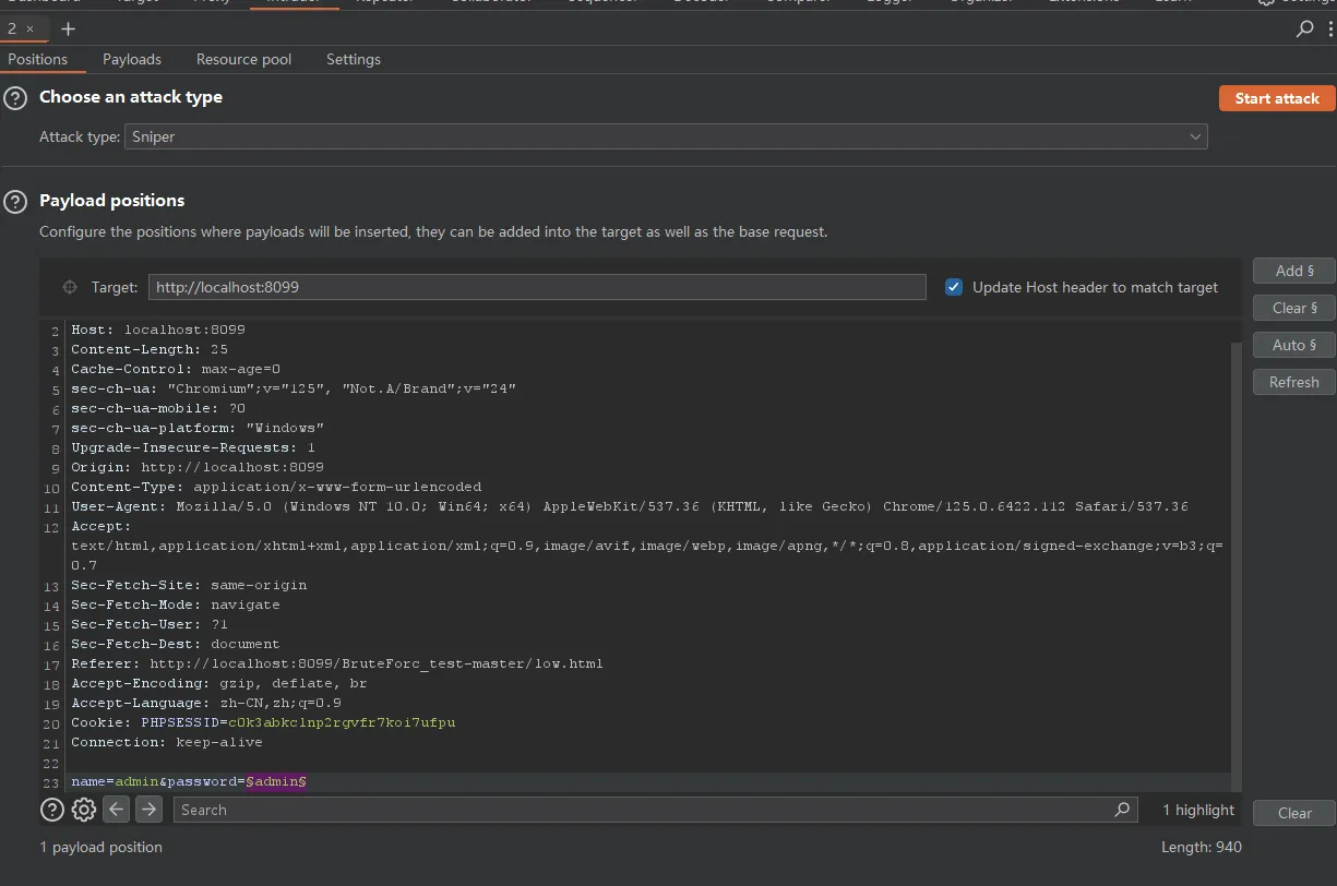 - Sniper(单个逐一爆破,适用于单个变量的爆破)