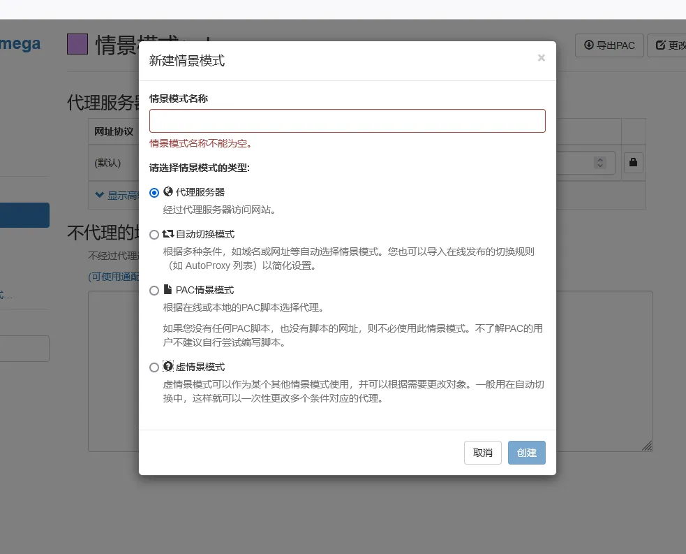 - 点击新建情景模式》输入名称》选择类型》点击创建