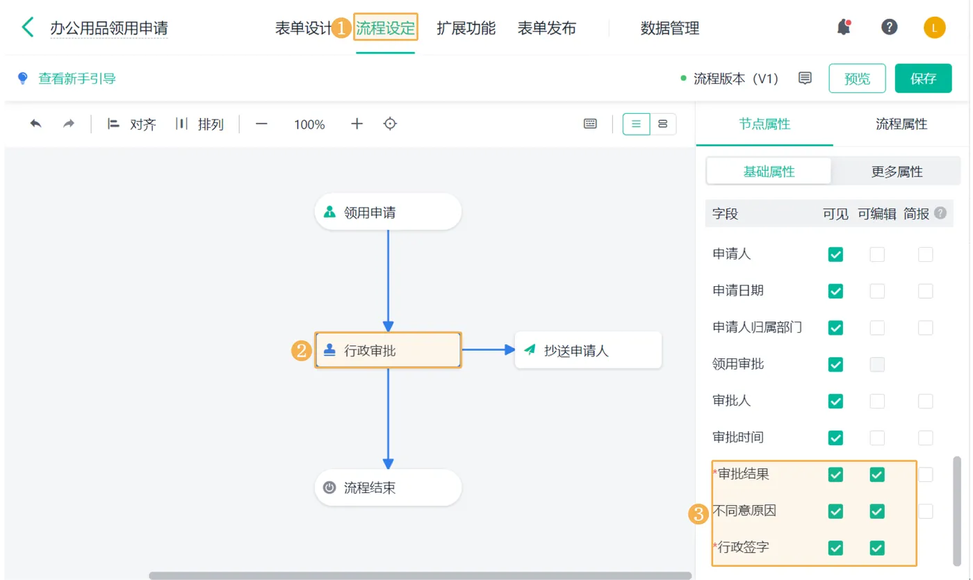 审批就别走纸质签字那一套了,直接在系统里配置: