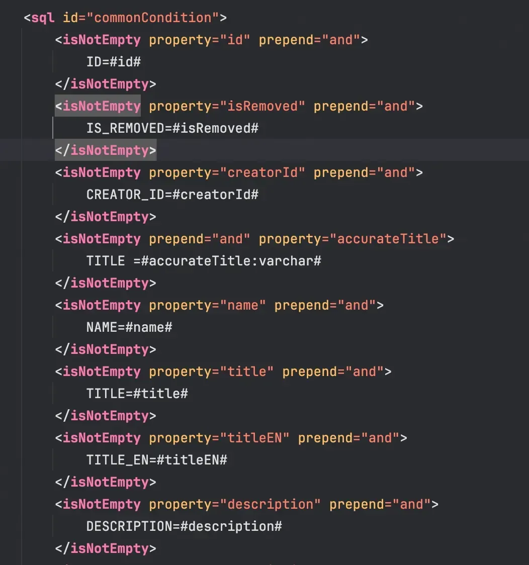 - 用一个SQL模版包含所有字段;