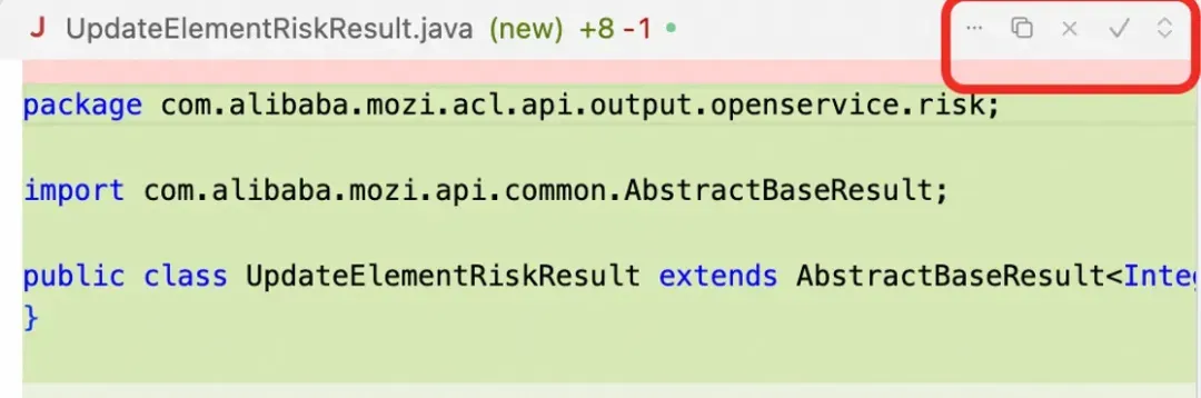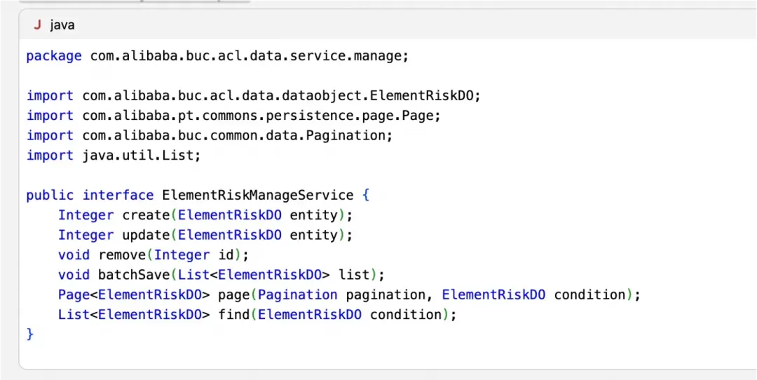 这里有一些瑕疵,规范里是要求使用xxxReadService,这里使用了QueryService,可能是下面的命名规范有冲突,可以调整规范或者将采纳策略补充到Rules或者Notepad中进一步说明,避免以后再犯。