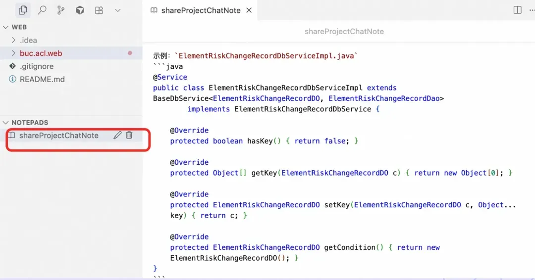 - 在web应用中新建notepad保存这个对话内容,命名为“shareProjectChatNote”;