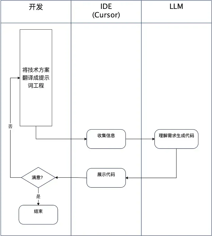 我们可以尝试将编程的主要工作和角色交给AI,而我们主要作为方案的Reviewer对方案进行把关,其过程如下: