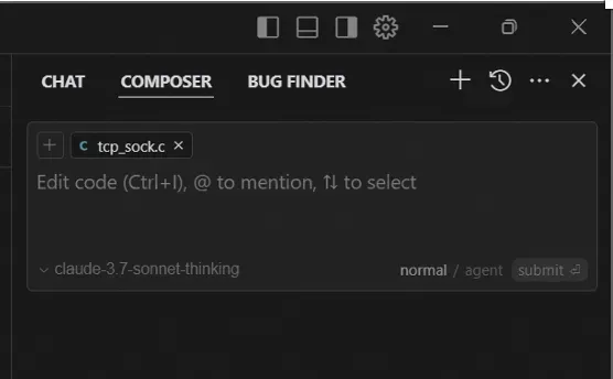 如果想让cursor生成代码,直接给出解决方案,需要在对话框中切换到agent模式,普通聊天模式不能完成该任务。
