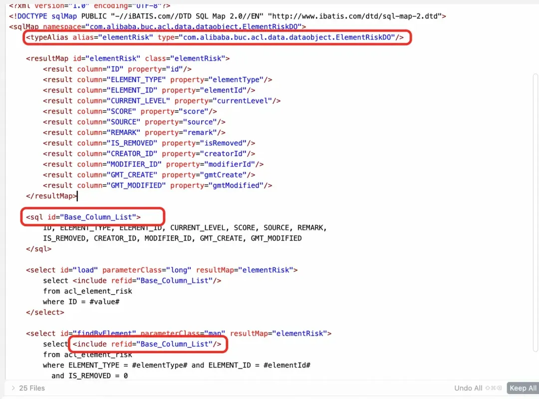 - 生成的Mapper结构与模版一致,包括在文件顶上配置resultMap定义、提供load查询方法等;