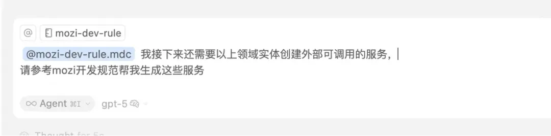 通过@Rules 选择刚才的编码规范rule后,告诉Cursor生成我们需要的服务。
