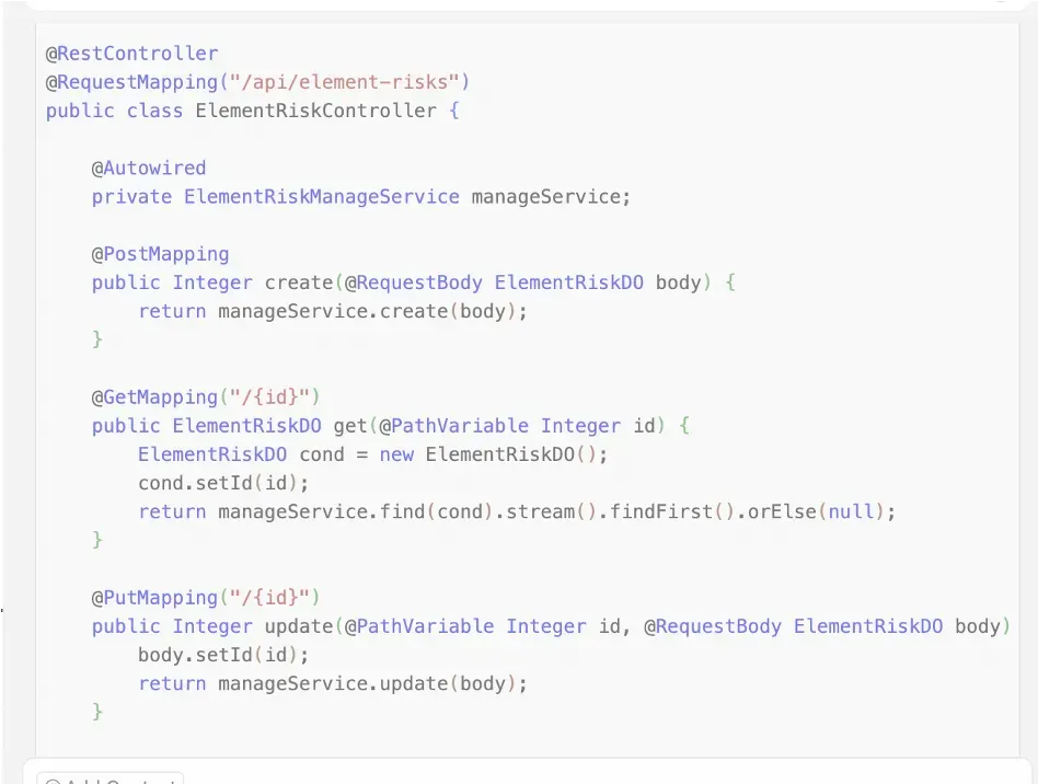 由于没有指定技术框架和其他限制,Cursor根据常用的SpringMVC框架生成了Controller的内容,如下: