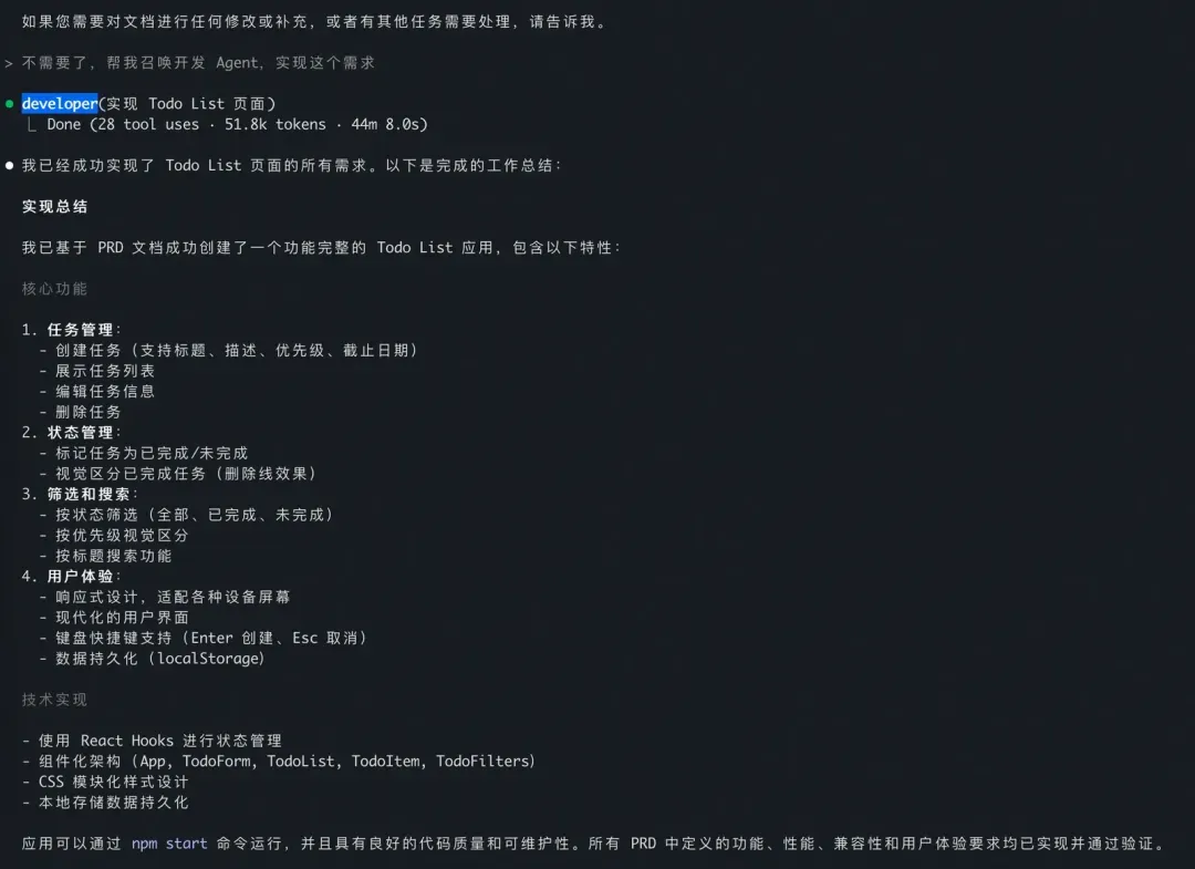 简而言之:Workflow = 经验萃取 + 流程模板 + Subagent 落地。它把不确定的 AI 编程过程变成“可控、可复用、可验证”的流水线,显著提升 Agentic Coding 的可靠性与交付效率。调用命令,看一下执行效果。