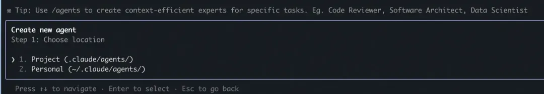 使用/agents命令打开子代理界面,按需创建项目级或用户级代理。每个代理的配置文件是一个 Markdown 文件(带 YAML 前置),存储在 .claude/agents/ 或 ~/.claude/agents/ 目录。