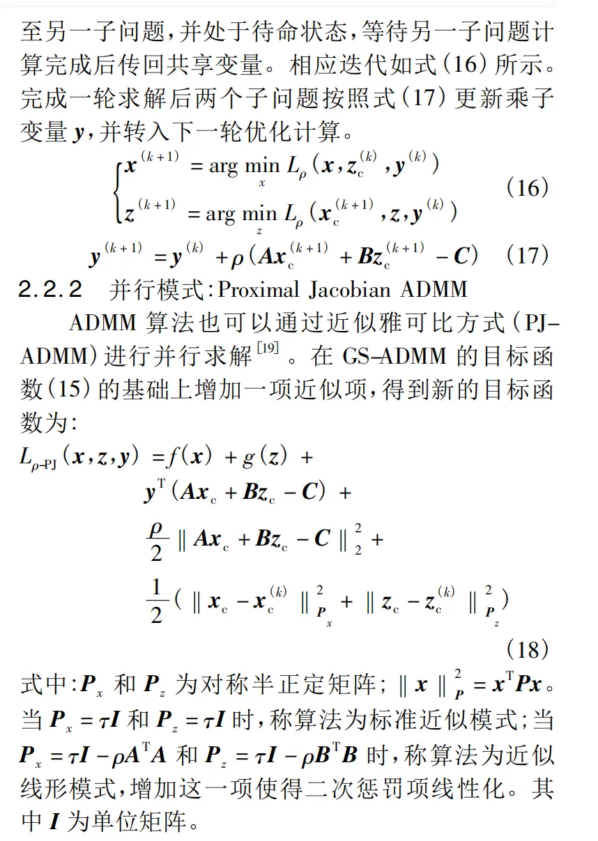 - 并行ADMM算法:各区域同时更新各自的变量值,并更新拉格朗日乘子。