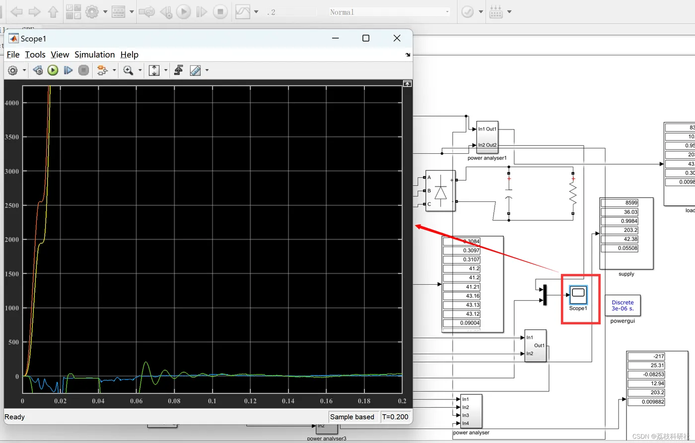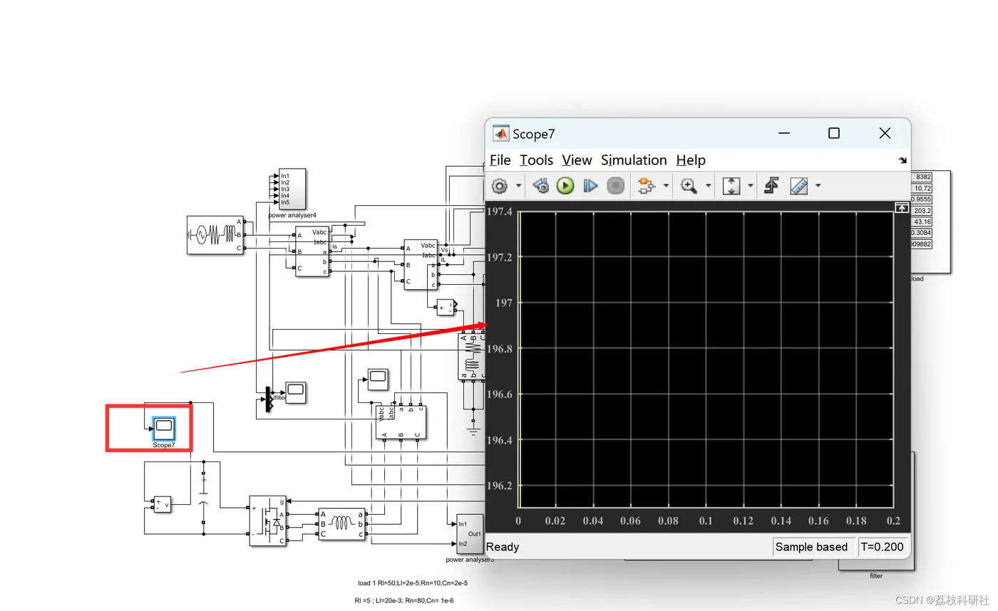 为了验证采用SRF算法的分流有源滤波器的有效性,我们利用Simulink仿真软件搭建了仿真电路。在仿真中,我们模拟了非线性和线性负载连接到三相供电系统的情况,供电电流为非正弦波。在0.08秒时,我们切换并联有源滤波器,并应用SRF算法进行谐波和无功功率的补偿。
