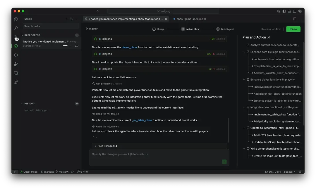 因此,我们为此专门设计了"Quest Mode"。在这个模式中,开发者的主要工作是明确任务意图和确认结果,而不是充当 AI 的"监工"。这种方式特别适合那些定义明确、可以批量处理的任务。