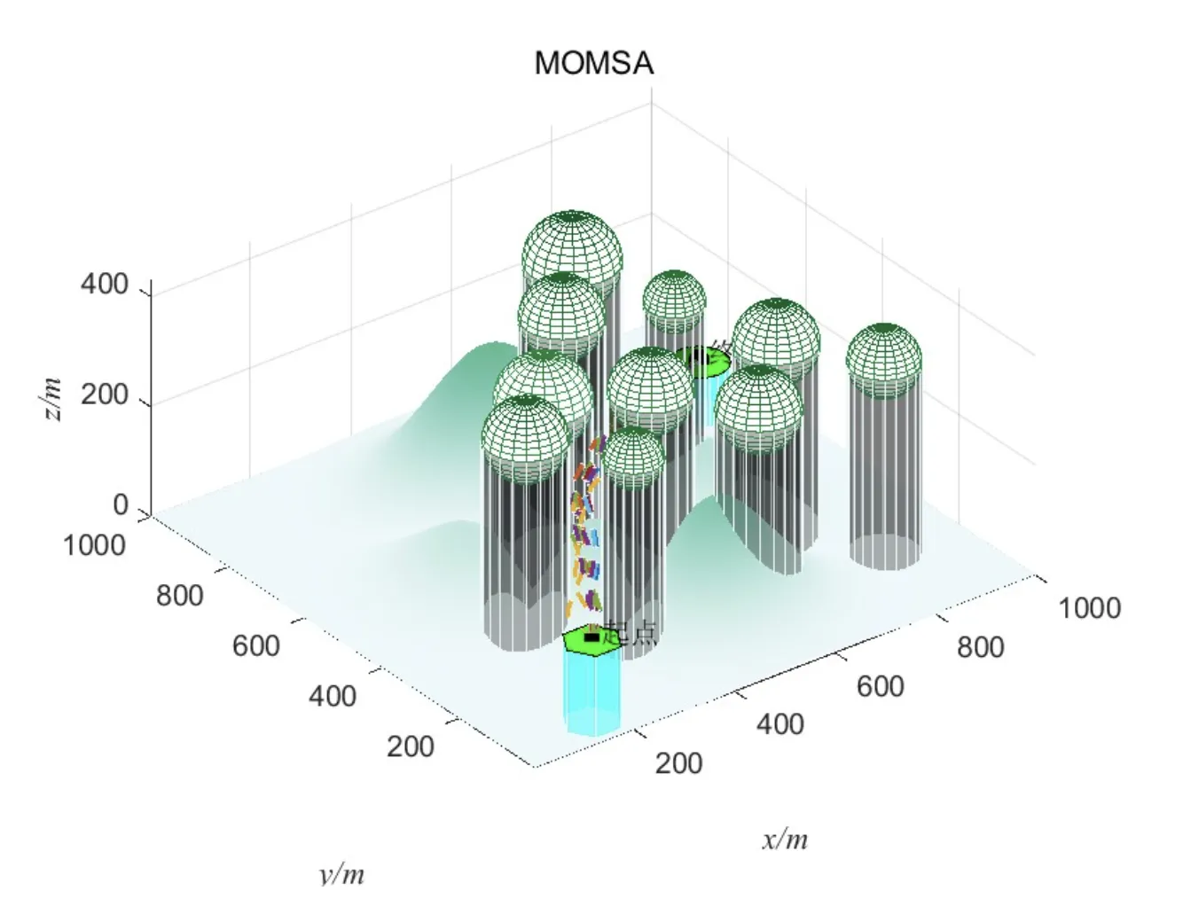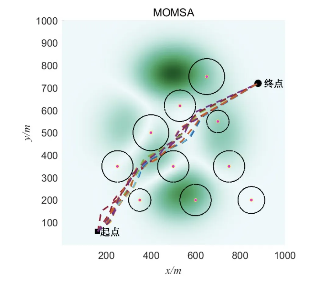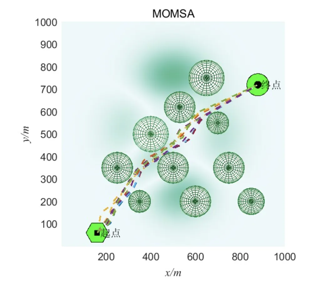 - MOMSA路径:在避开密集障碍物区域时,选择绕行路径,飞行时间增加12%,但安全性提升25%。