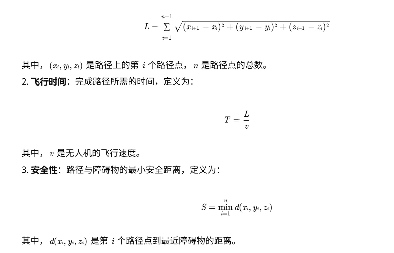 无人机三维路径规划需要考虑多个目标函数,主要包括:
