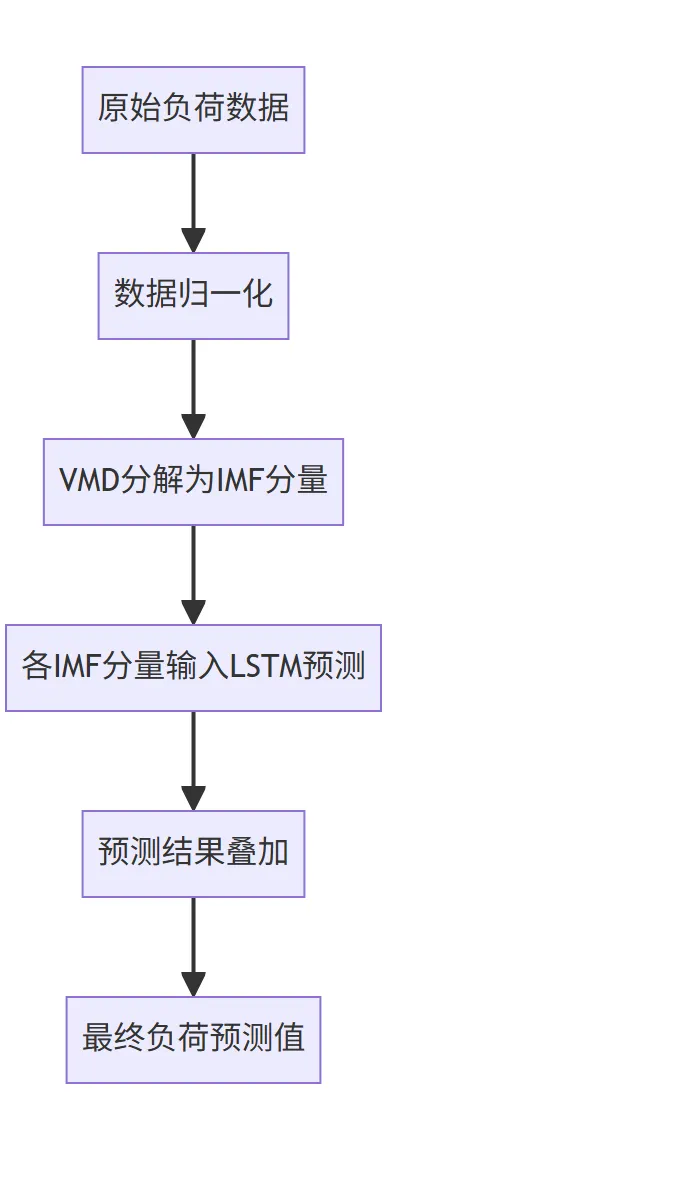 VMD-LSTM模型通过信号分解→分量预测→结果重构的框架,显著提升负荷预测精度。其核心价值在于: