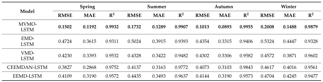 | VMD-IOOA-LSTM | 0.161 | 0.218 | 1.79 | 0.991 |