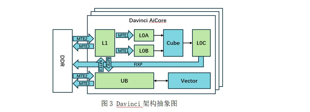 数据搬运单元 (包括MTE1/2/3单元和FIXP单元):负责在核外内存(DDR)、多级缓存(L1, L0A/L0B/L0C)以及统一缓存(UB)之间传输数据。