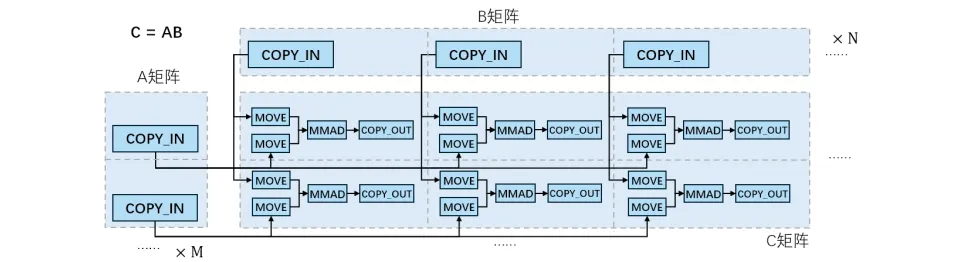 - 首先,忽略缓存管理节点后,所有的计算图都以COPY_IN节点开始(将数据从核外内存搬入核内缓存),经过一系列核内基本运算,最终以COPY_OUT节点结束(将计算结果从核内缓存搬出至核外内存)。