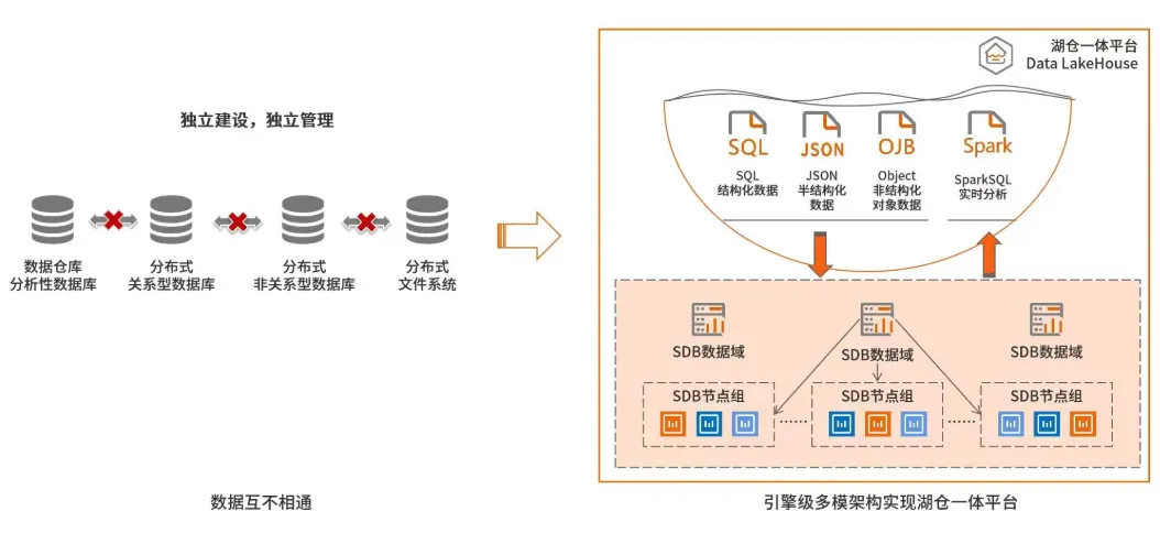 ①“湖上建仓”模式:在数据湖基础上叠加事务支持与索引优化。