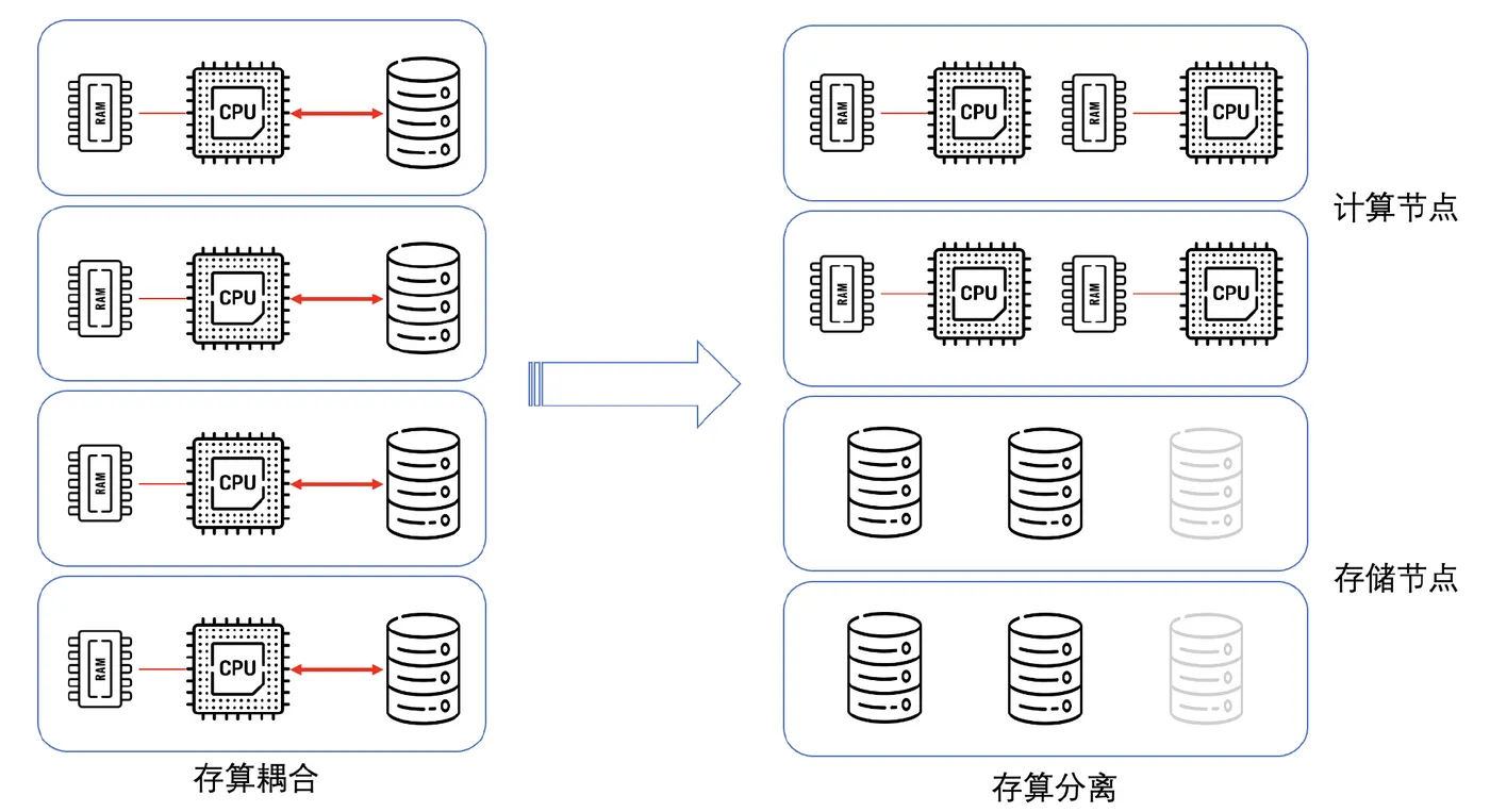 (2)技术实现:存算分离架构通过解耦计算层与存储层,实现资源的弹性伸缩。