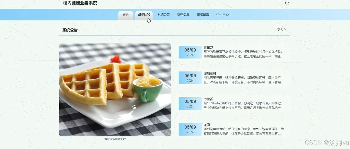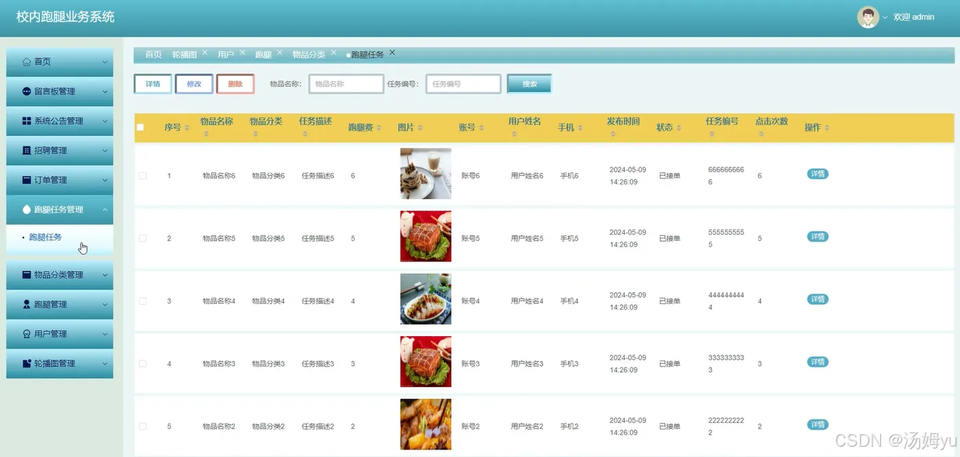 在当今快节奏的校园生活中,学生面临着学业、社团活动和个人事务等多方面的压力,时间变得愈发宝贵。与此同时,校园规模不断扩大,不同功能区域分布广泛,师生在日常学习生活中产生了多样化的跑腿需求,校内跑腿服务应运而生并逐渐兴起。传统的校内跑腿服务多以人工调度和线下沟通为主,存在诸多弊端。一方面,信息传递不及时、不准确,导致跑腿任务分配混乱,效率低下。例如,委托人难以快速找到合适的跑腿人员,而跑腿者也可能因信息不畅错过合适的任务。另一方面,缺乏有效的监督和管理机制,服务质量难以保证,委托人与跑腿者之间的信任问题时有发生,如物品丢失、损坏或未按时送达等情况,容易引发纠纷。随着信息技术的飞速发展,互联网和移动智能设备在校园中高度普及,为解决传统校内跑腿服务的问题提供了新的思路和技术支持。通过建立校内跑腿管理系统,利用信息化手段实现跑腿任务的在线发布、智能匹配、实时跟踪和评价反馈等功能,能够极大地提高服务效率和质量,增强委托人与跑腿者之间的信任。此外,校内跑腿管理系统还具有广阔的市场前景和社会价值。它不仅可以满足校内师生的实际需求,还能为学生提供勤工俭学的机会,培养学生的实践能力和创业精神。因此,开展校内跑腿管理系统的研究具有重要的现实意义,有助于推动校园服务的信息化、智能化发展,营造更加便捷、高效的校园生活环境。