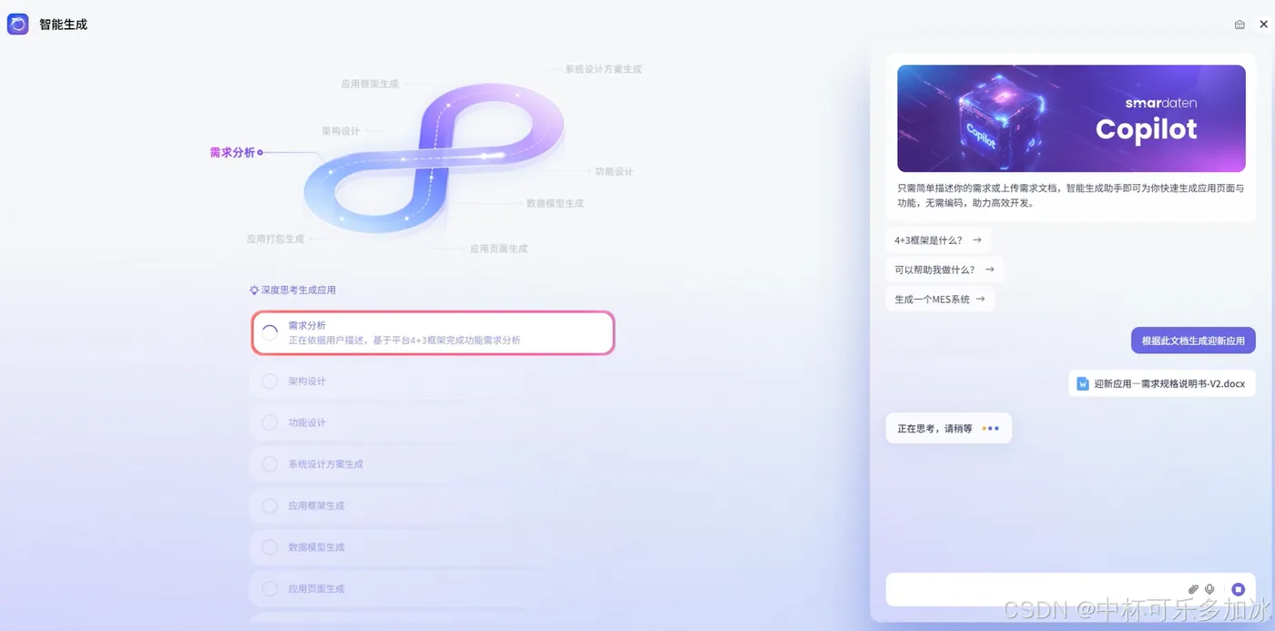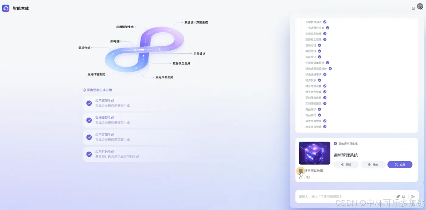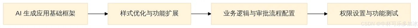 - AI 生成应用基础框架:无需从零搭建,利用平台AI能力直接生成系统雏形,省去重复配置工作;