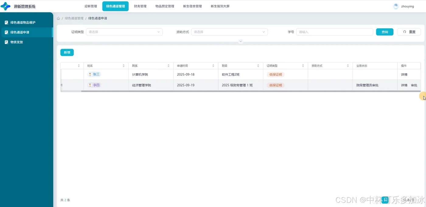 - 绿色通道管理模块:完成助学申请从“提交-审核-反馈”的全流程线上化,确保资助政策精准落地;