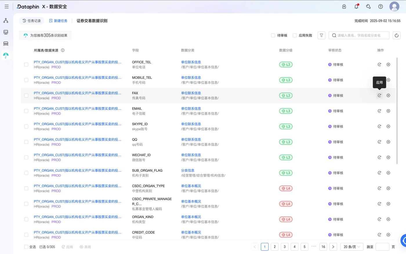 特性 2:X-数据安全,分钟级完成字段分类分级识别