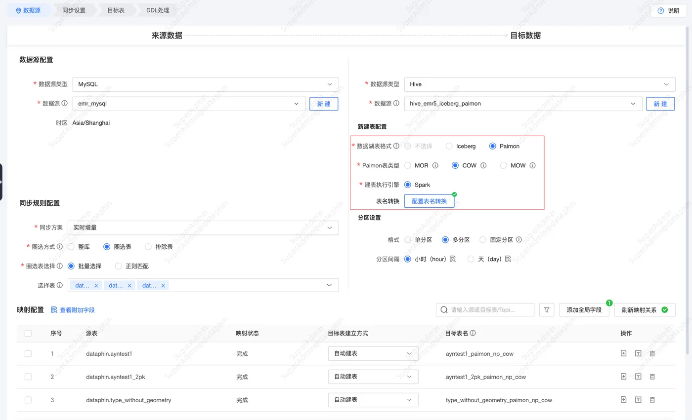 - 全面支持Paimon格式的数据湖构建,包括离线集成、实时集成、表管理