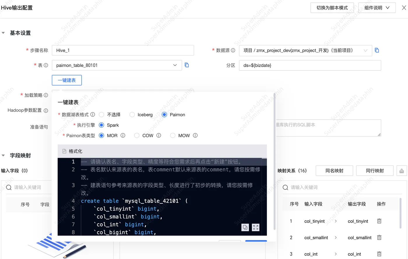 - 离线链路:离线集成输入、离线集成输出端、表管理、离线研发都已支持Paimon;