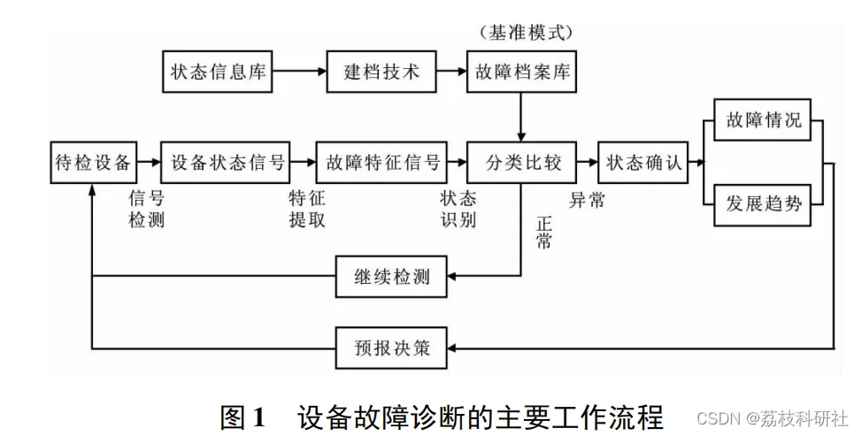设备故障诊断又叫设备状态诊断。它利用监测到的设备特征参数,通过数据处理,分析设备是否存在故障,并进一步预测设备的未来状态。