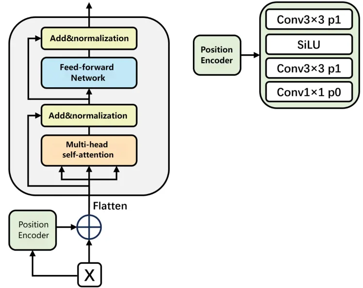 - 位置编码器:包含卷积层和SiLU激活函数,用于为序列中的每个位置提供位置信息。