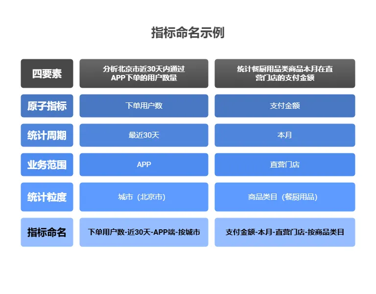 数据理清楚了,就得把指标管好,避免再出现“同名不同义”的情况。这一层的重点就是做好这4件事: