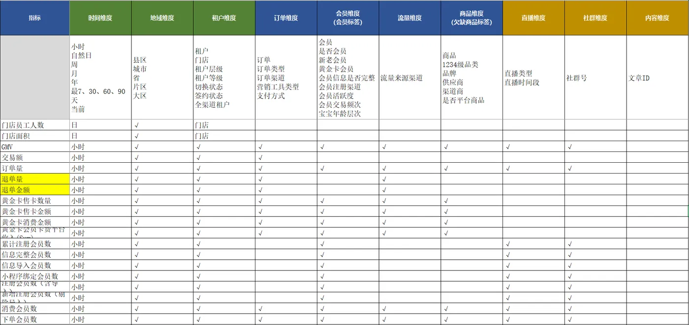 维度结构 | 渠道 > 门店 > 区域;商品 > 品类;时间(日/周/月) |