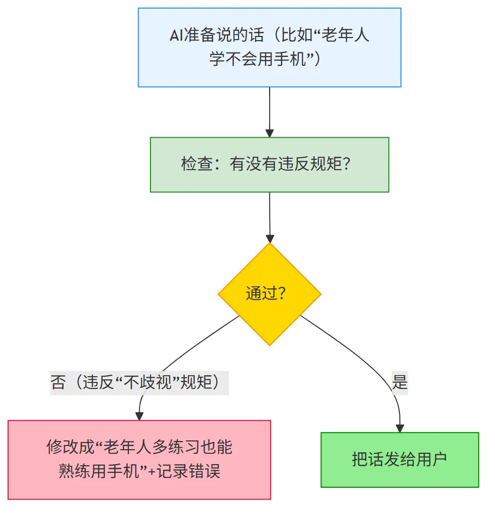 AI再聪明,也不能想说啥就说啥,得提前列好“不准做的事”,比如不能歧视人、不能给错误医疗建议。
