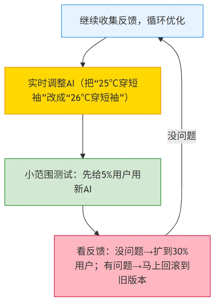 - 回滚窗口:30分钟内如果发现新AI有问题(比如把“25℃”改成“30℃”,用户全说热),马上切回旧版本,减少影响;