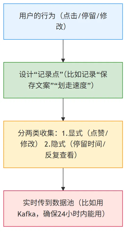- 隐式反馈:看了3秒就划走(可能觉得答案没用)、反复看某段内容(可能觉得有用)——相当于你没说话,但司机从你皱眉的表情里知道“你不满意”。