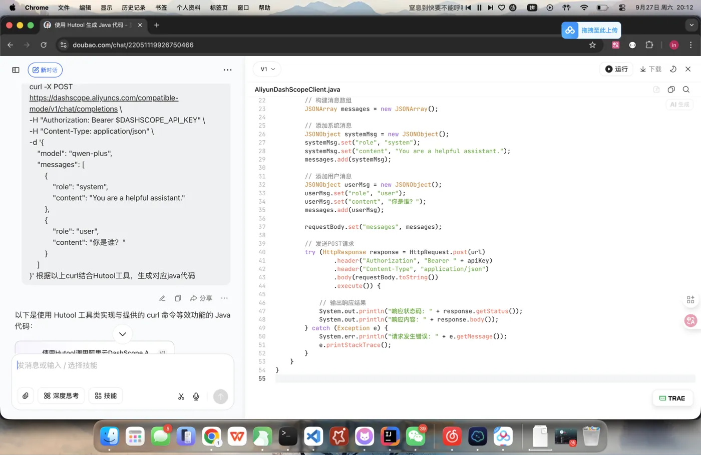 - 因为是AI时代,hutool工具中又提供了网络请求的方法,所以说将Curl传给任意的AI工具生成对应代码