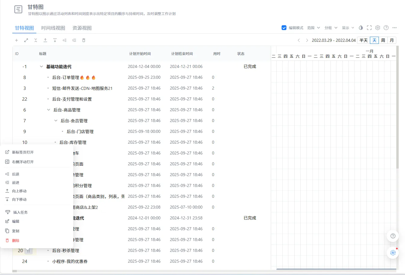 甘特图界面