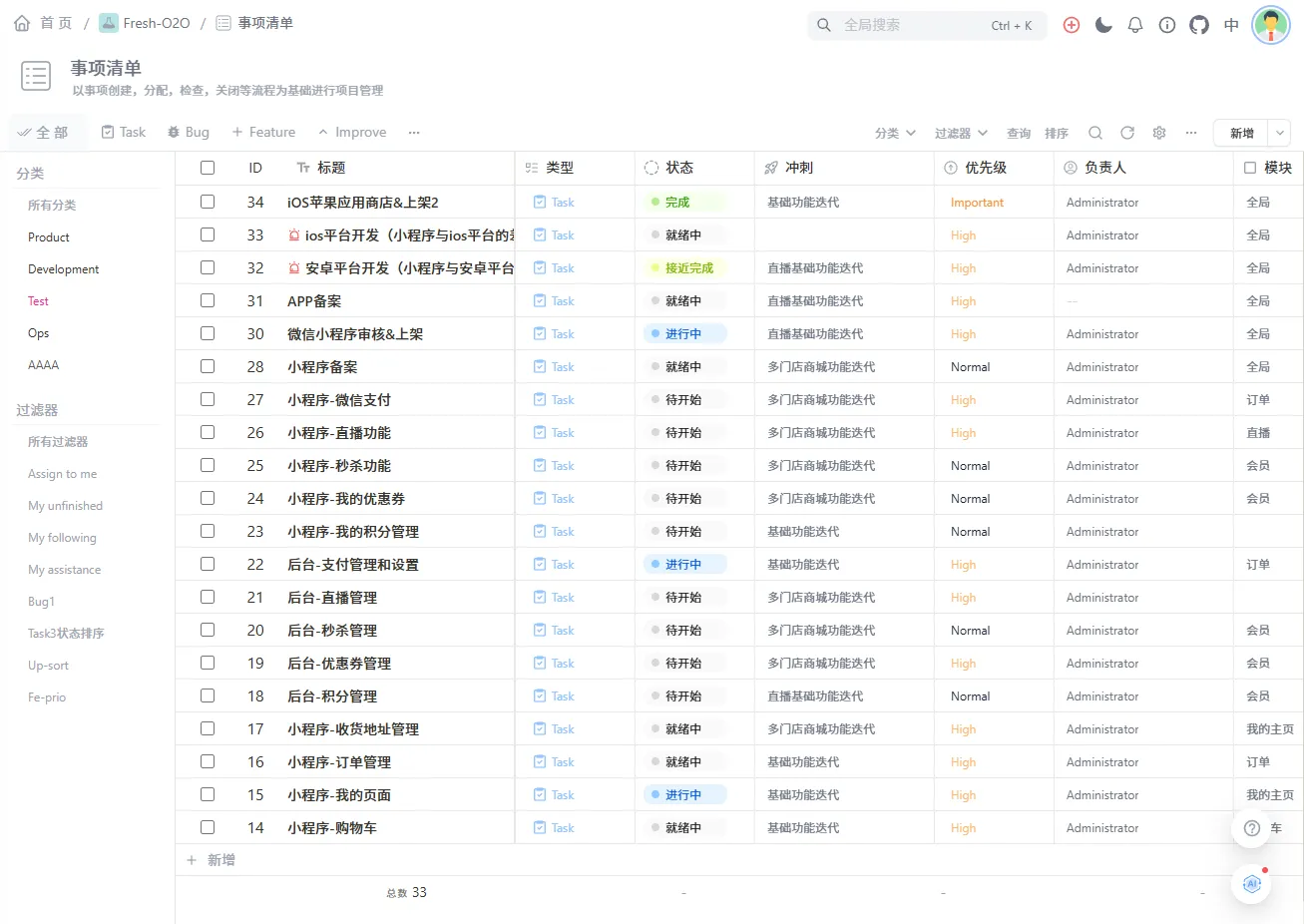 事项管理界面