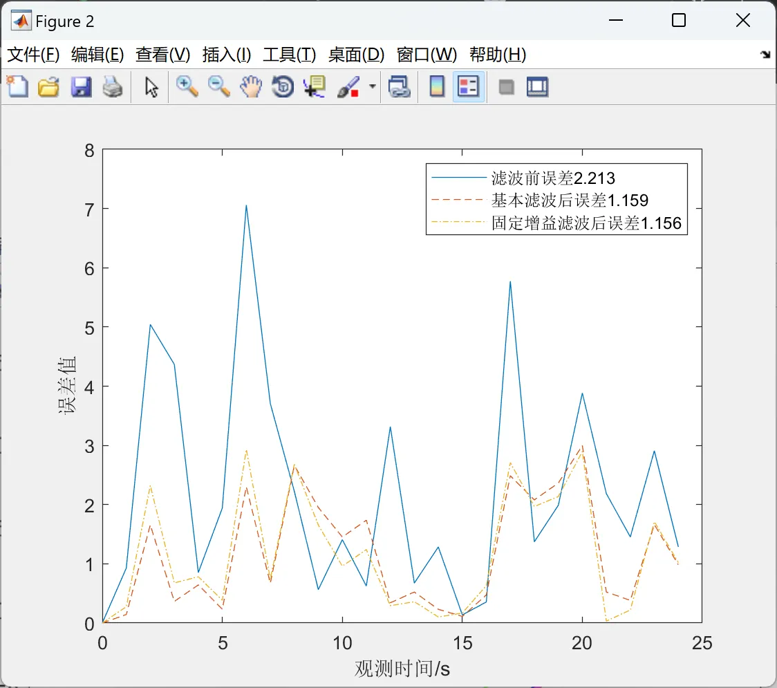 这是一种简化的卡尔曼滤波器,它不像标准卡尔曼滤波器那样在每个时间步更新增益,而是使用一个固定的增益。这种方法在某些简单或者资源有限的应用场合中非常有用,尽管牺牲了一些估计精度。