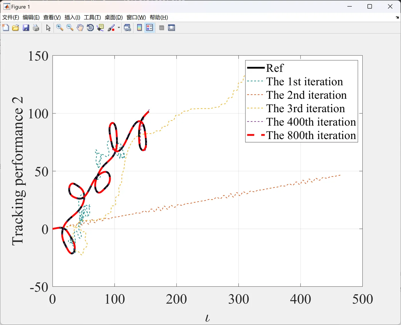 第一方向是通过整合基于数据的方法来增强传统的系统识别和控制方法。具体而言,ILC可用于基于先验知识离线或在线构建模型,或者与传统控制方法结合设计控制器。这个想法启发了一些研究。李等(2020年)引入了一种将ILC和模型预测控制(MPC)相结合的跟踪控制方法,以解决由于模型不确定性而导致的控制过程收敛缓慢的问题。陈等(2023年)设计了一种交叉耦合ILC(CCILC)方法和具有可变遗忘因子的变增益ILC方法(VFF-VGILC),以解决双轴机构控制中的轮廓误差问题。针对系统中不同试验长度的问题,管等(2023年)提出了一种反馈辅助的PD型ILC算法,庄等(2022年)开发了一种具有原始-对偶内点方法的ILC算法。如果从数据驱动的角度研究控制问题,就可以有效增强控制系统的鲁棒性。然而,上述方法旨在解决具有已知或部分已知先验知识的系统的特定控制问题。因此,考虑开发一个即插即用的数据驱动算法更加值得。