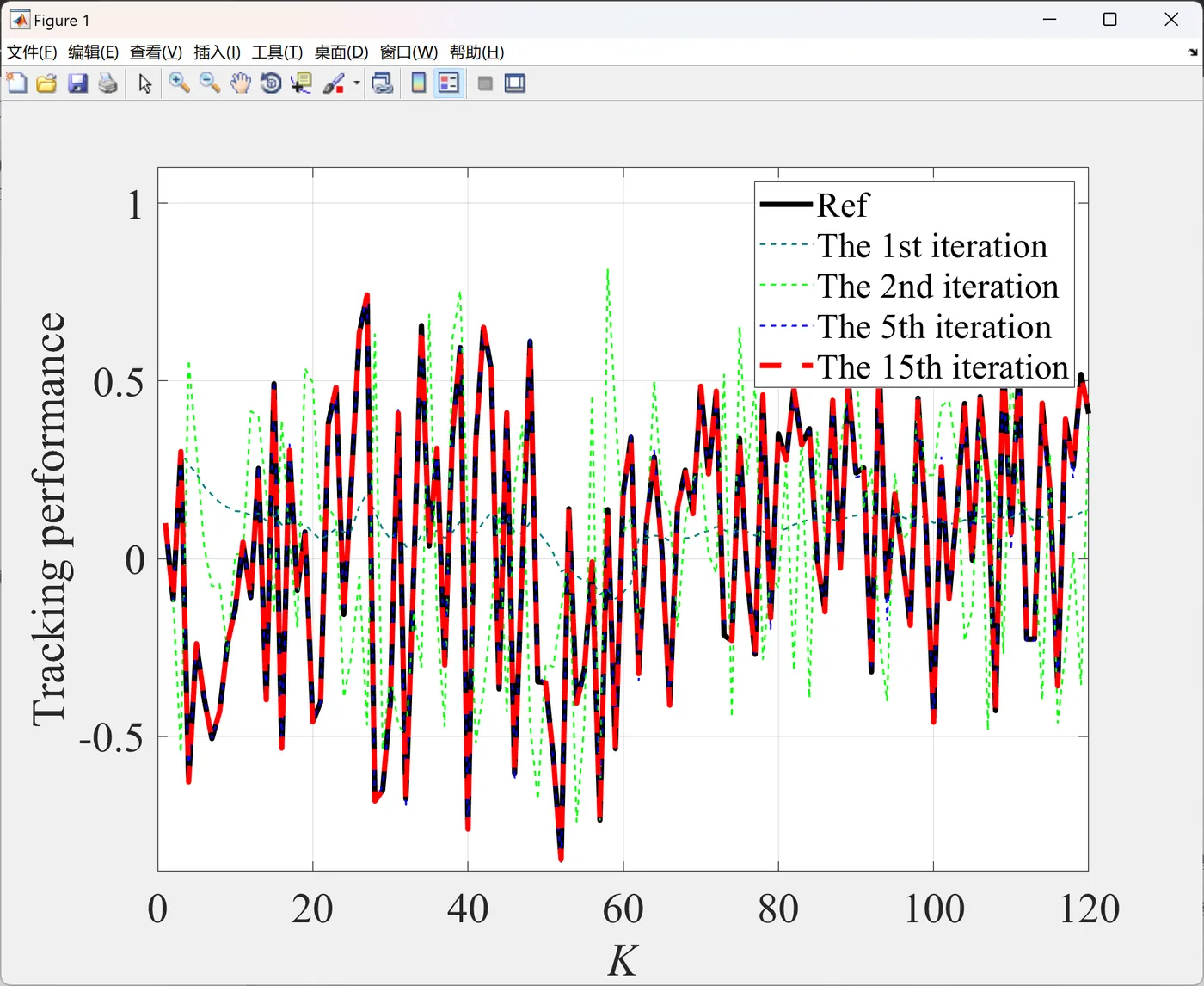 对于具有重复运行模式的单输入单输出(SISO)离散时间系统的轨迹跟踪控制的目标是使系统的输出在每次迭代中接近参考轨迹(刘 & 魏,2014)。众所周知,通过重复迭代纠正错误,迭代学习控制(ILC)可以提高跟踪性能(宋等,2016)。将数据驱动思想(Djordjevic等,2023年;戈,2017年;魏等,2022年;张等,2011年;张等,2017年)引入ILC可以有效地克服由复杂系统环境和模型不确定性引起的控制器设计困难。特别是随着机器学习和大数据方法的发展,基于数据而不是模型的自学习优化决策,即数据驱动ILC,在无人系统(陈等,2022年;普尔温和德安德烈,2011年)和安全控制(沈和李,2021年;尹等,2022年)等人工智能领域得到了充分肯定和广泛研究。