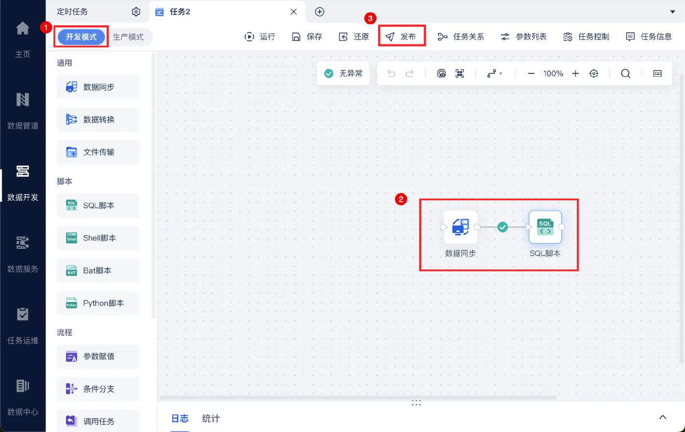 ①多种可视化功能算子结合python、shell、sql等脚本,低代码DAG开发模式,数据处理灵活,应用场景丰富。